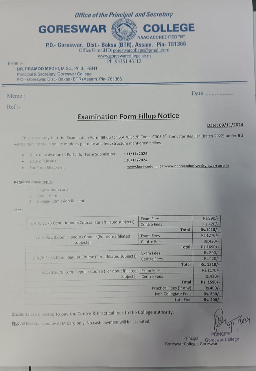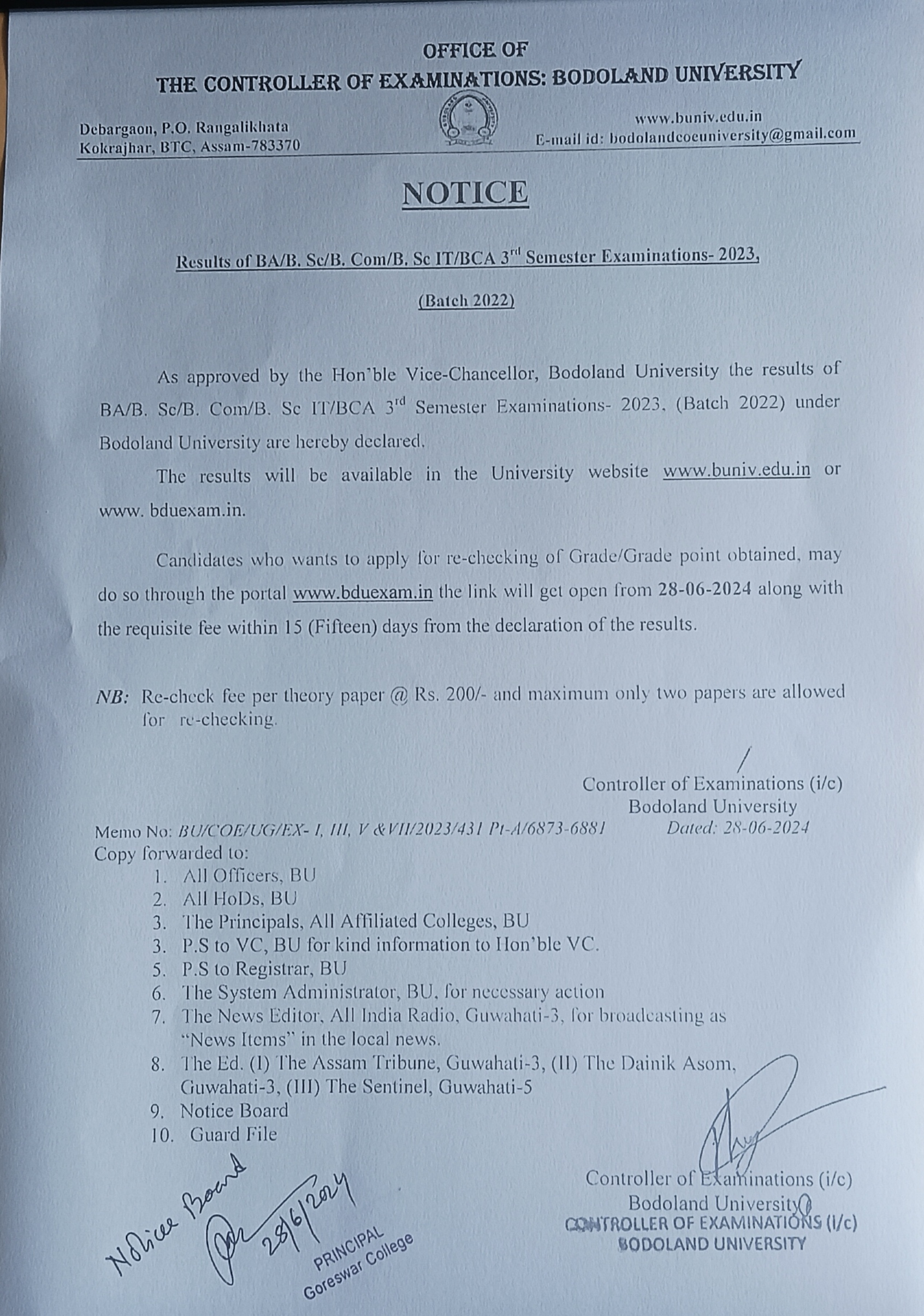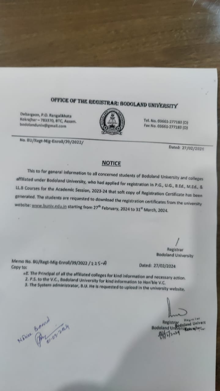 Notice: download Registration certficates under bodoland Univeristy
