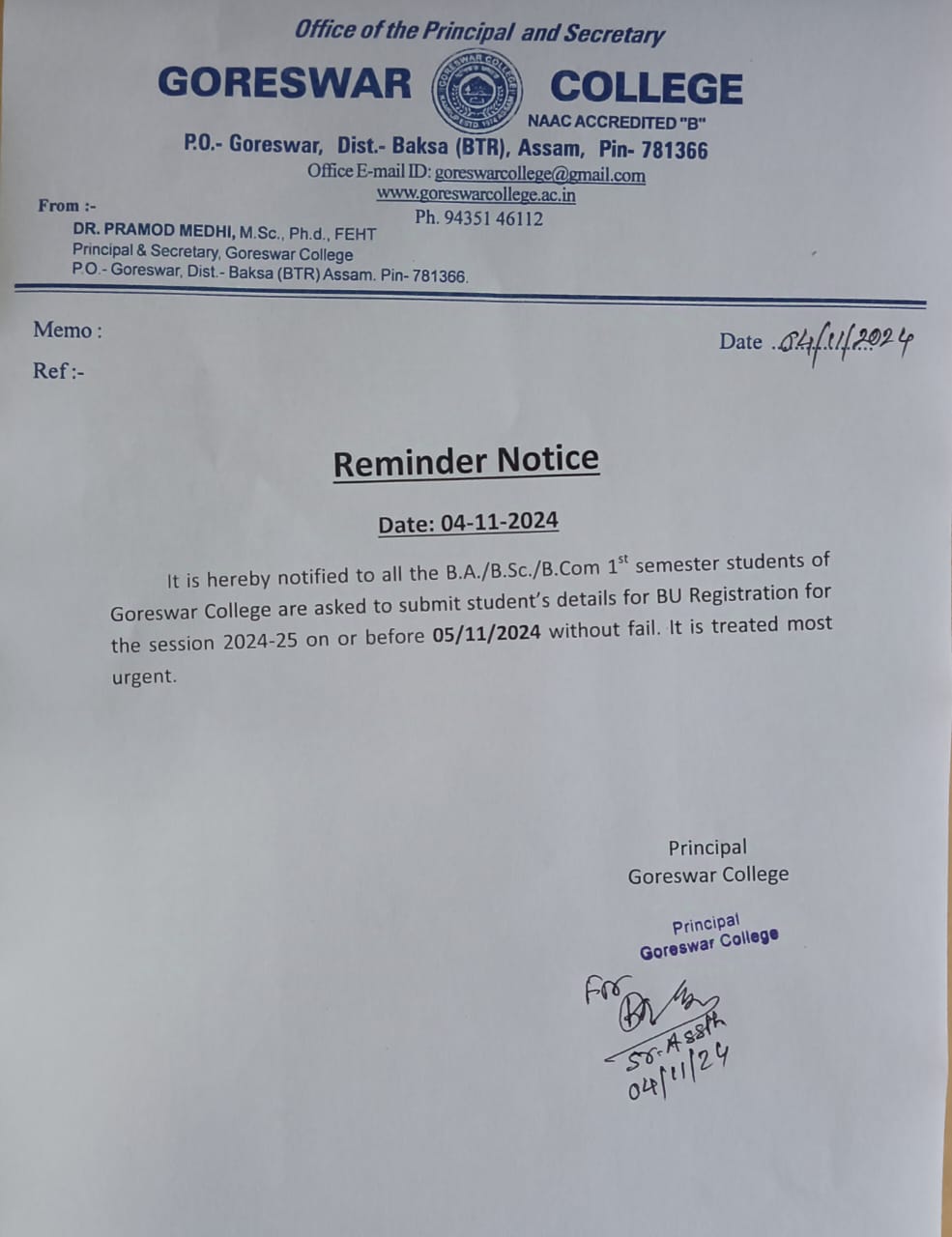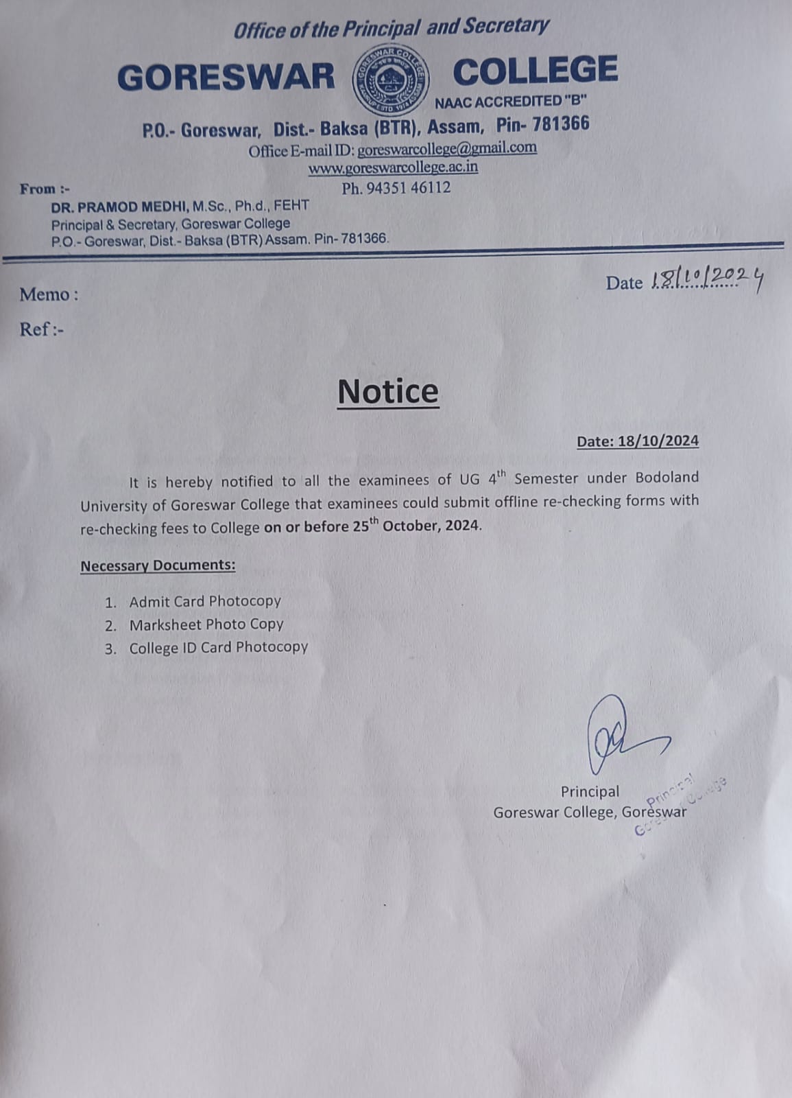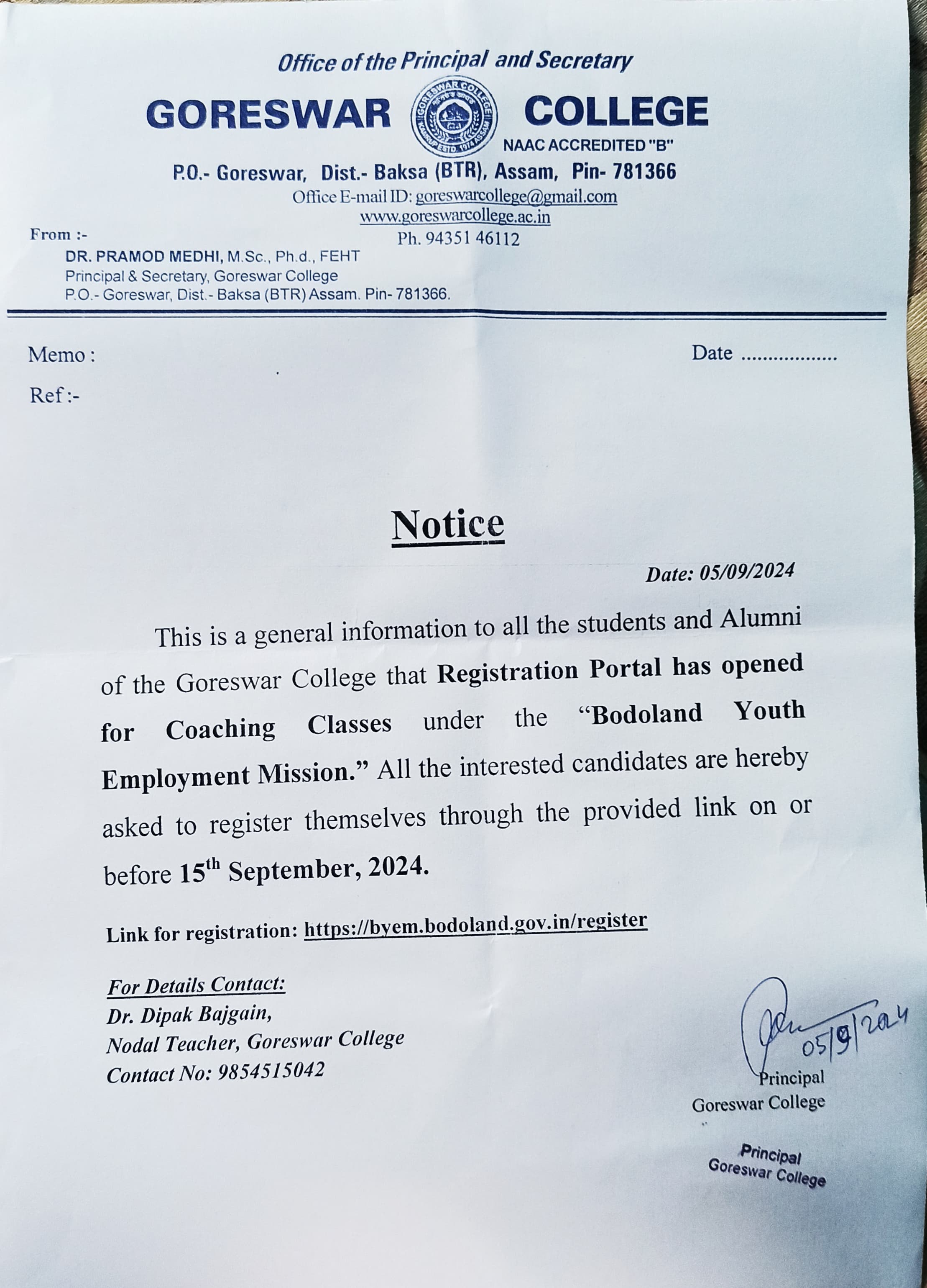 Notice: download Registration certficates under bodoland Univeristy