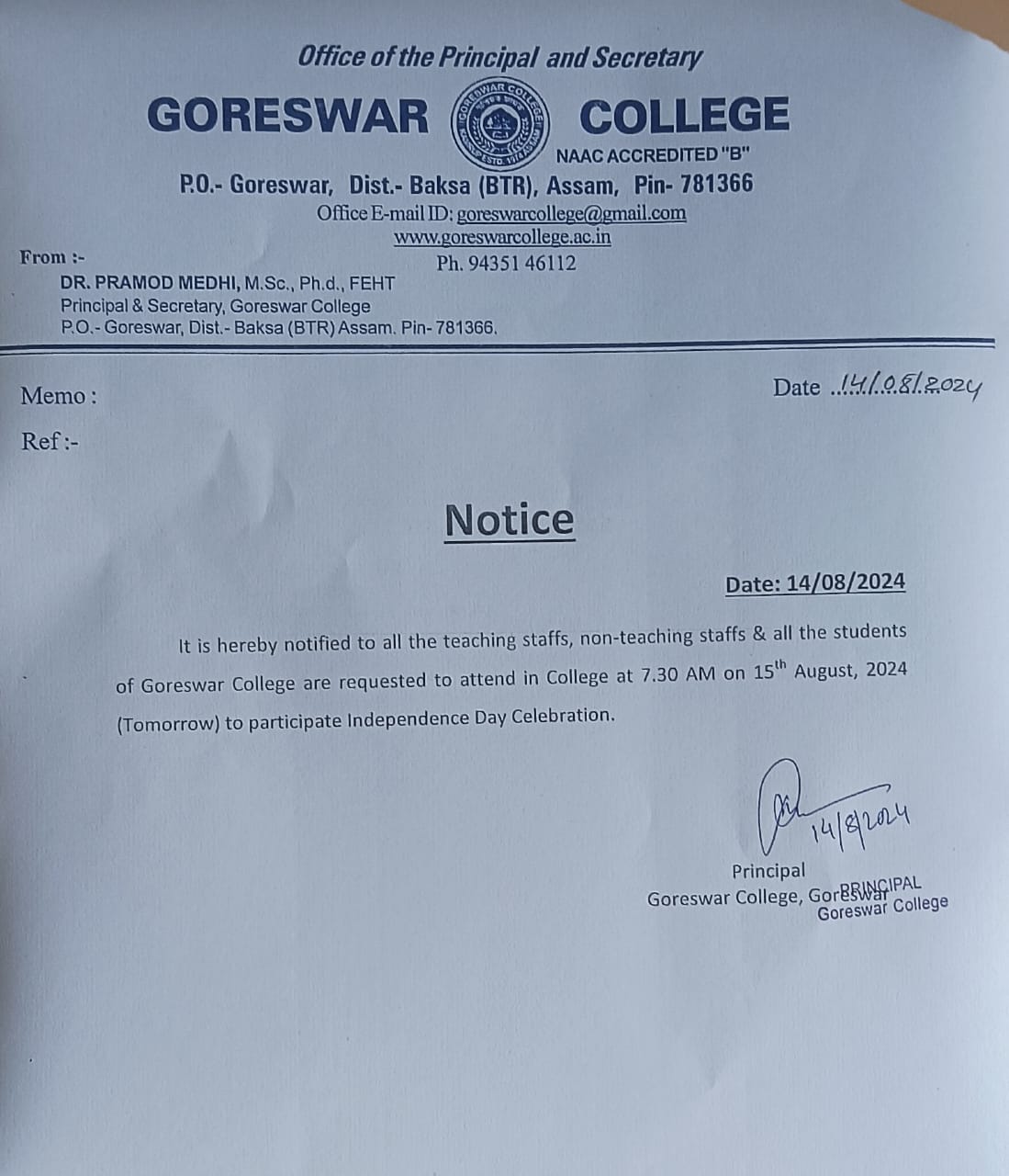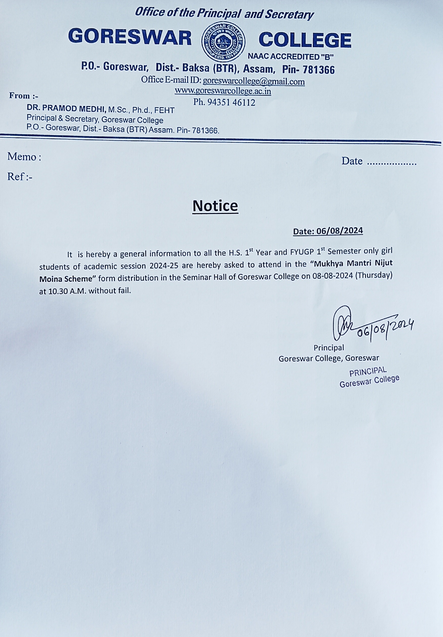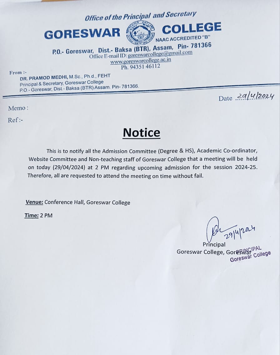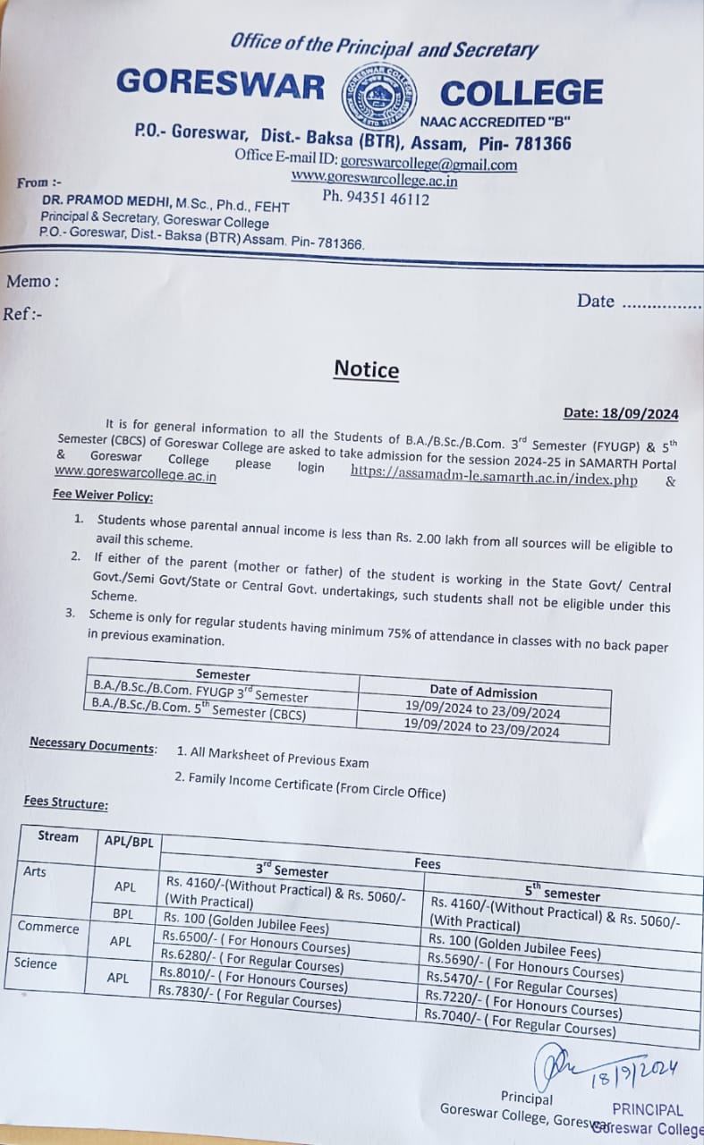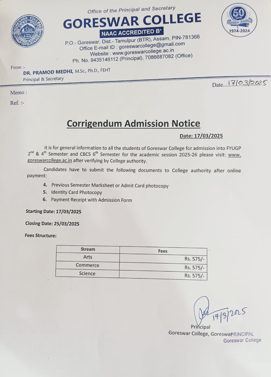 Notice No1 for upcoming Goreswar College Students Union Election, 2026-27