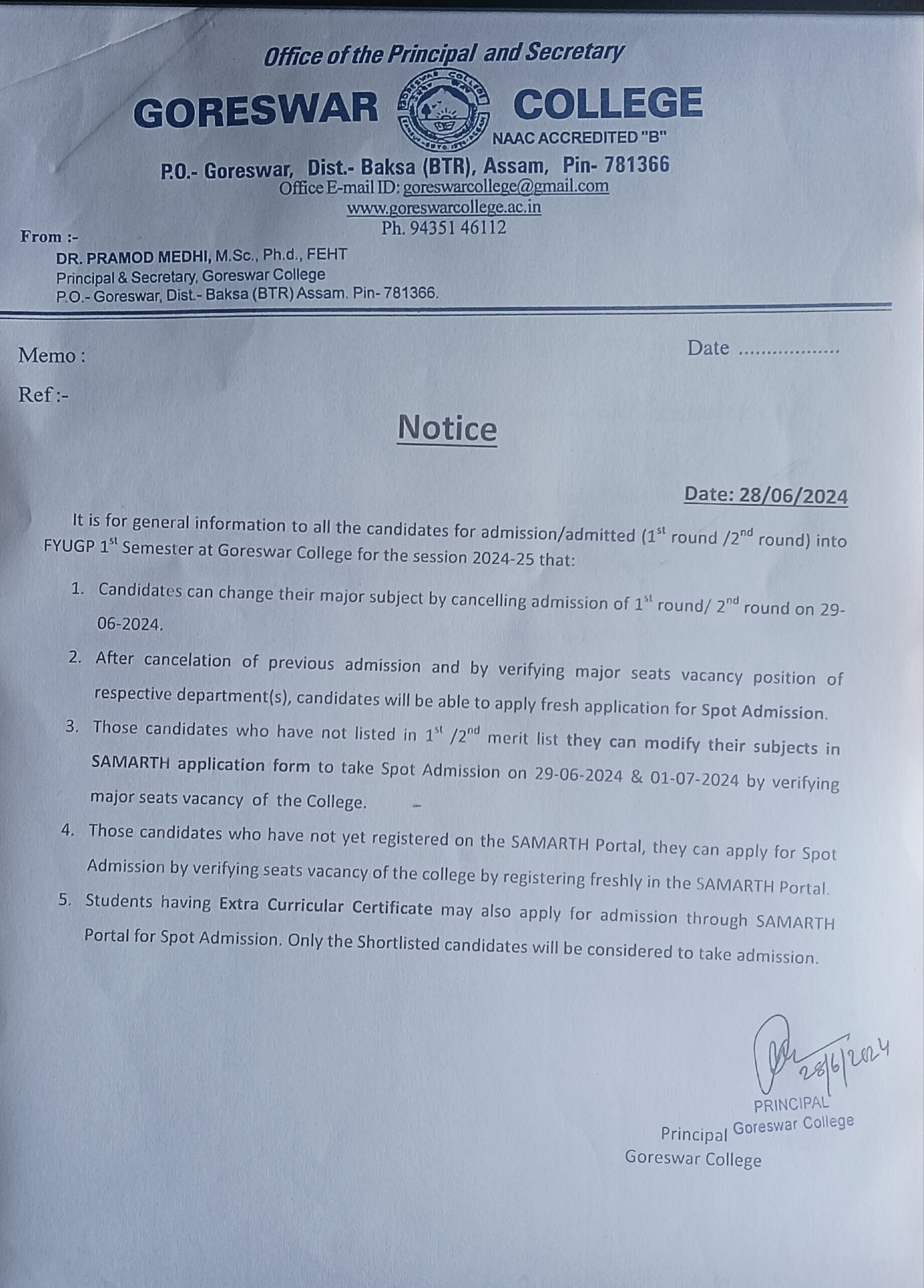 Regarding FYUGP 1st Semester Final spot admission in samarth portal