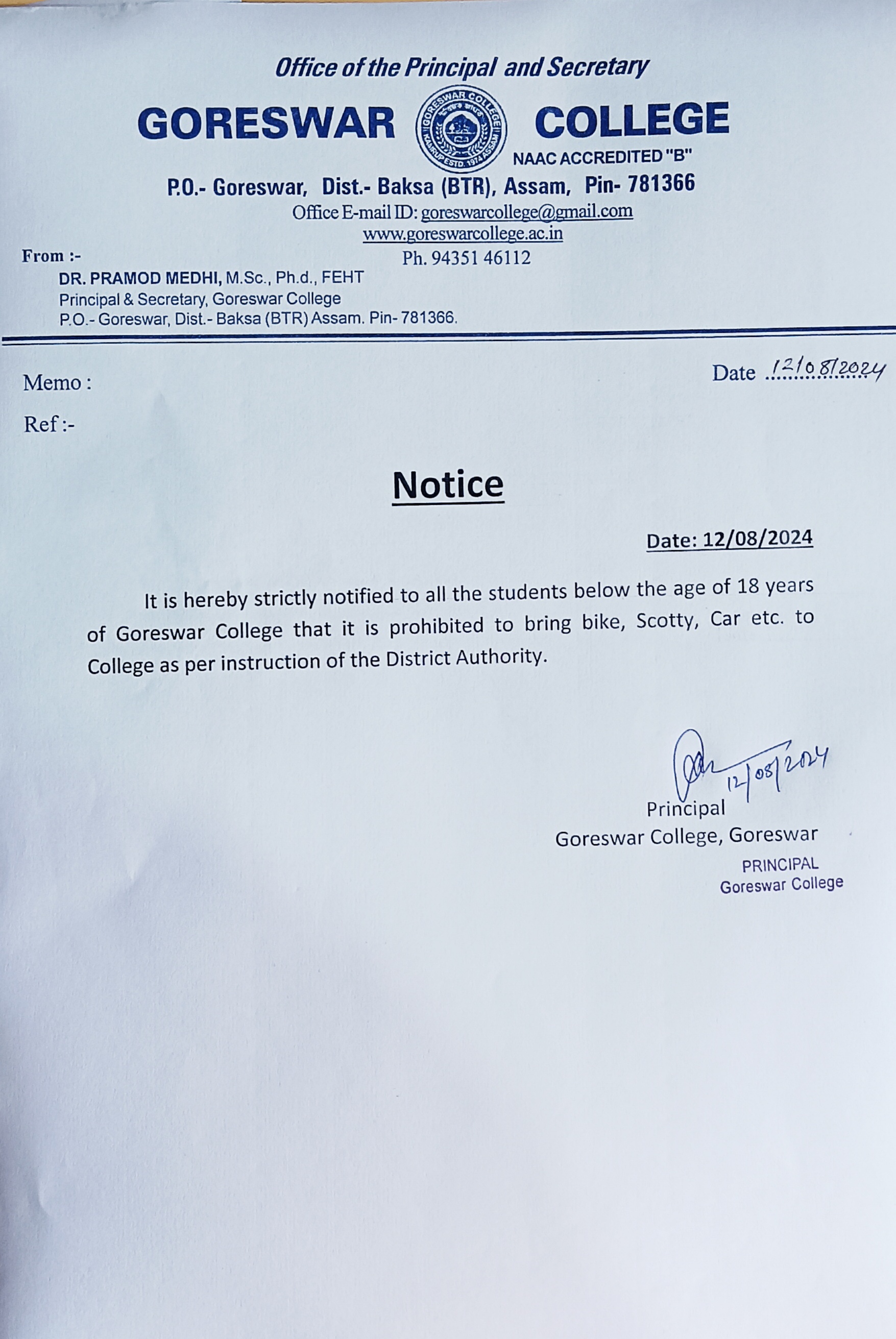 Regarding regular classes of 2nd, 4th & 6th Semester for the session 2025-26