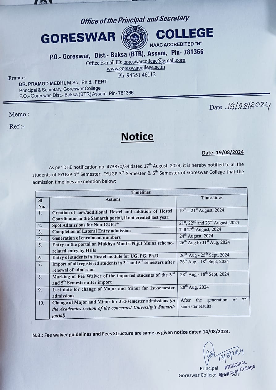 Nontice: Admission for UG courses (2024-25) through Assam Higher Education Admission Portal