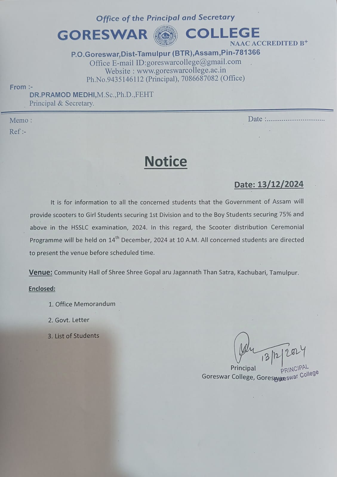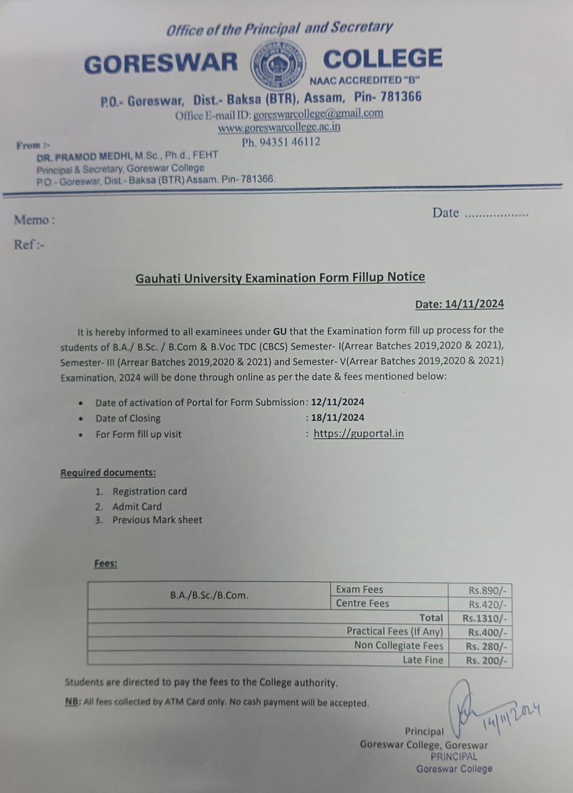 Students formfillup notice 15/12/2023